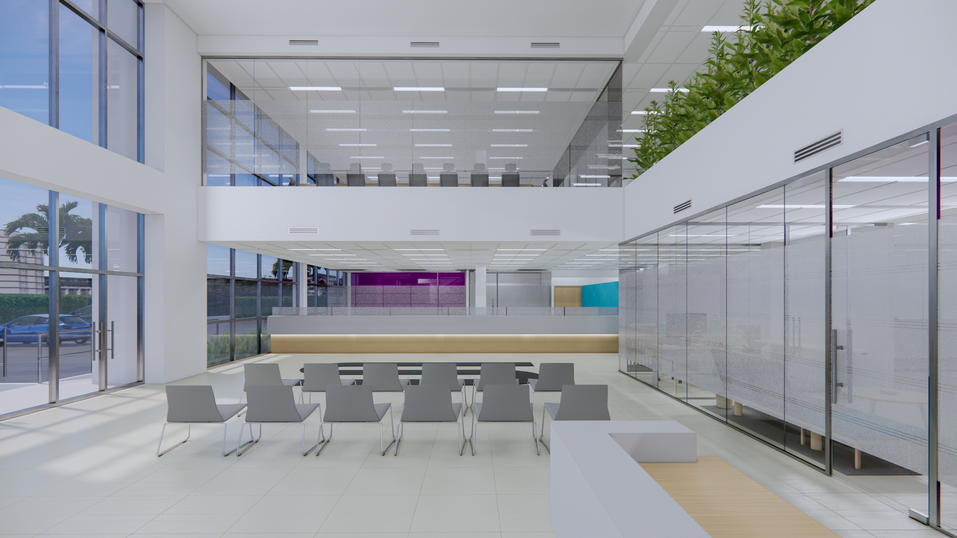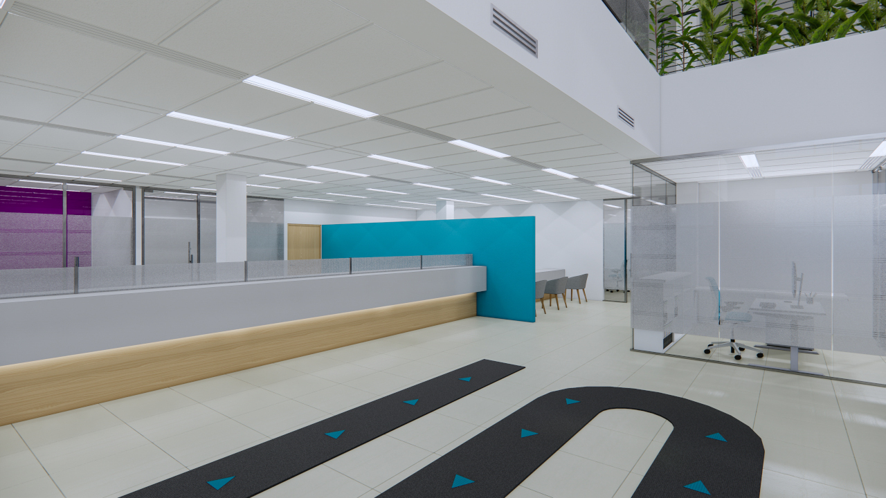 Built in the early 2000’s, this bank facility required upgrading of its dated interior fit outs. Reconfiguration of the offices and service counters aids in the daily operation of the bank. The replacement of the floor, ceiling, and office partitions redefined a modern interior of transparency and openness. A portion of the double height ground floor area was co-opted to add a new meeting room and General Manager’s office.