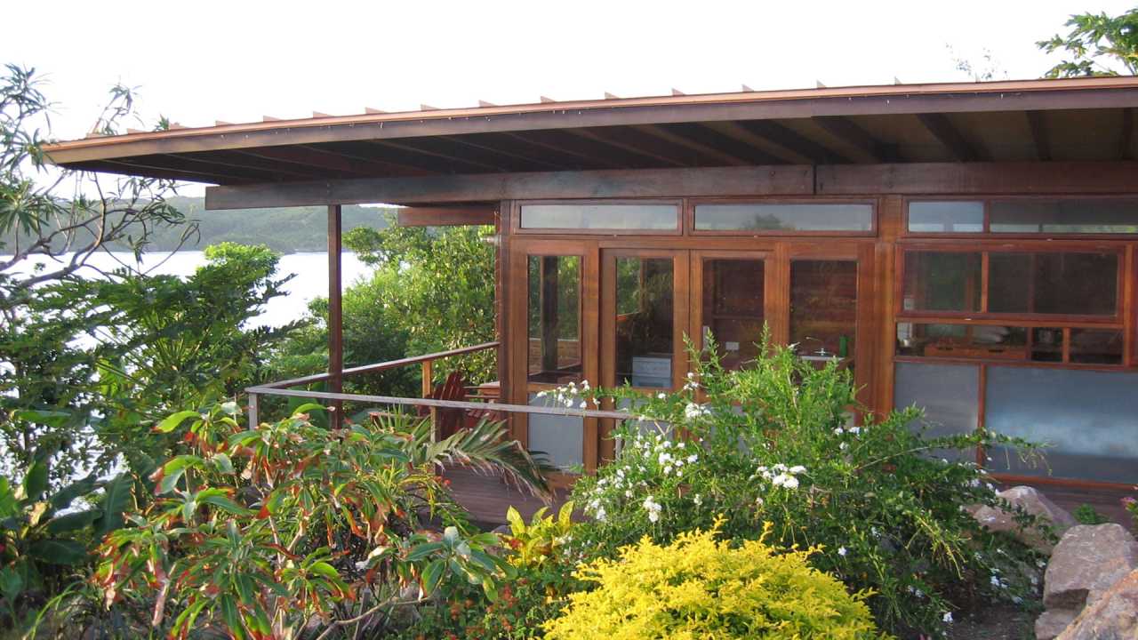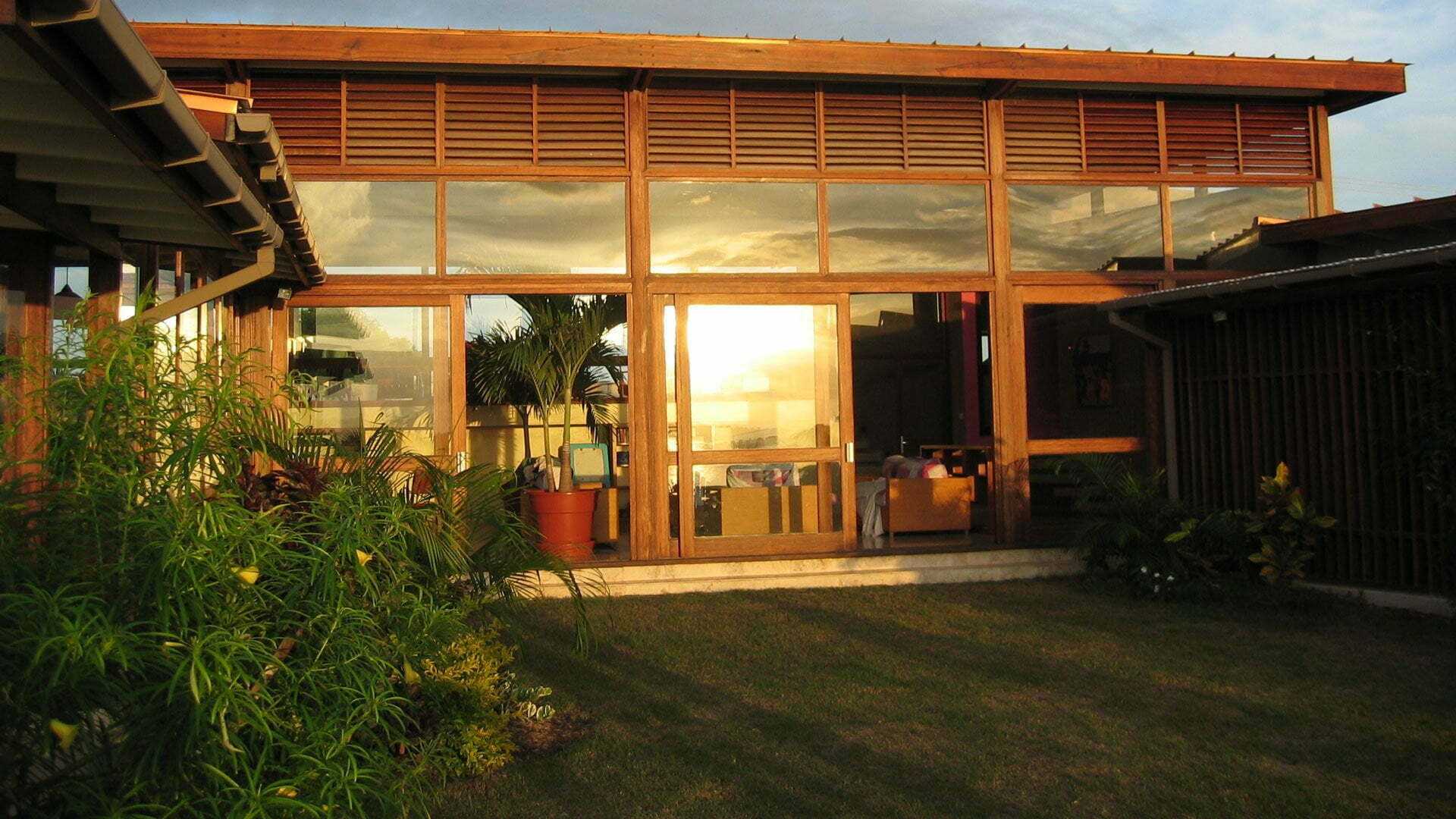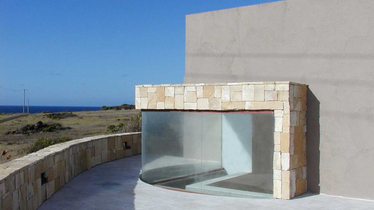To minimize the impact of the wind gusts and ocean sprays on the property, a serpentine wall was designed to wrap the exposed east side of the home.